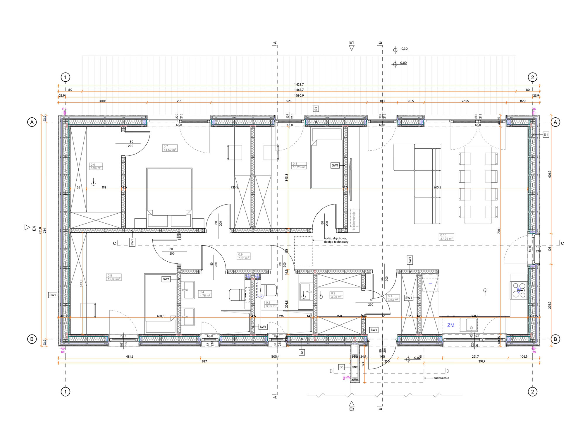 - Dach - konstrukcja dachu z certyfikowanego drewna C24 170 mm, blacha na rąbek stojący, pełne deskowanie