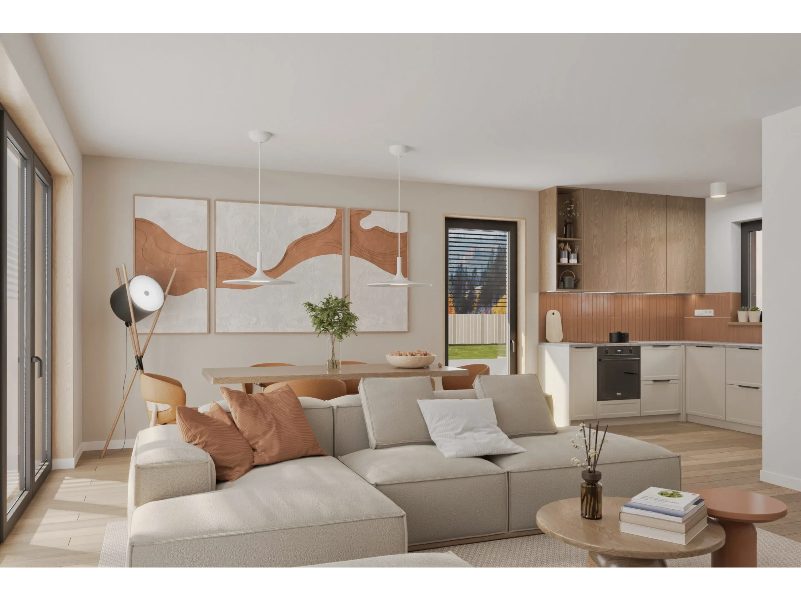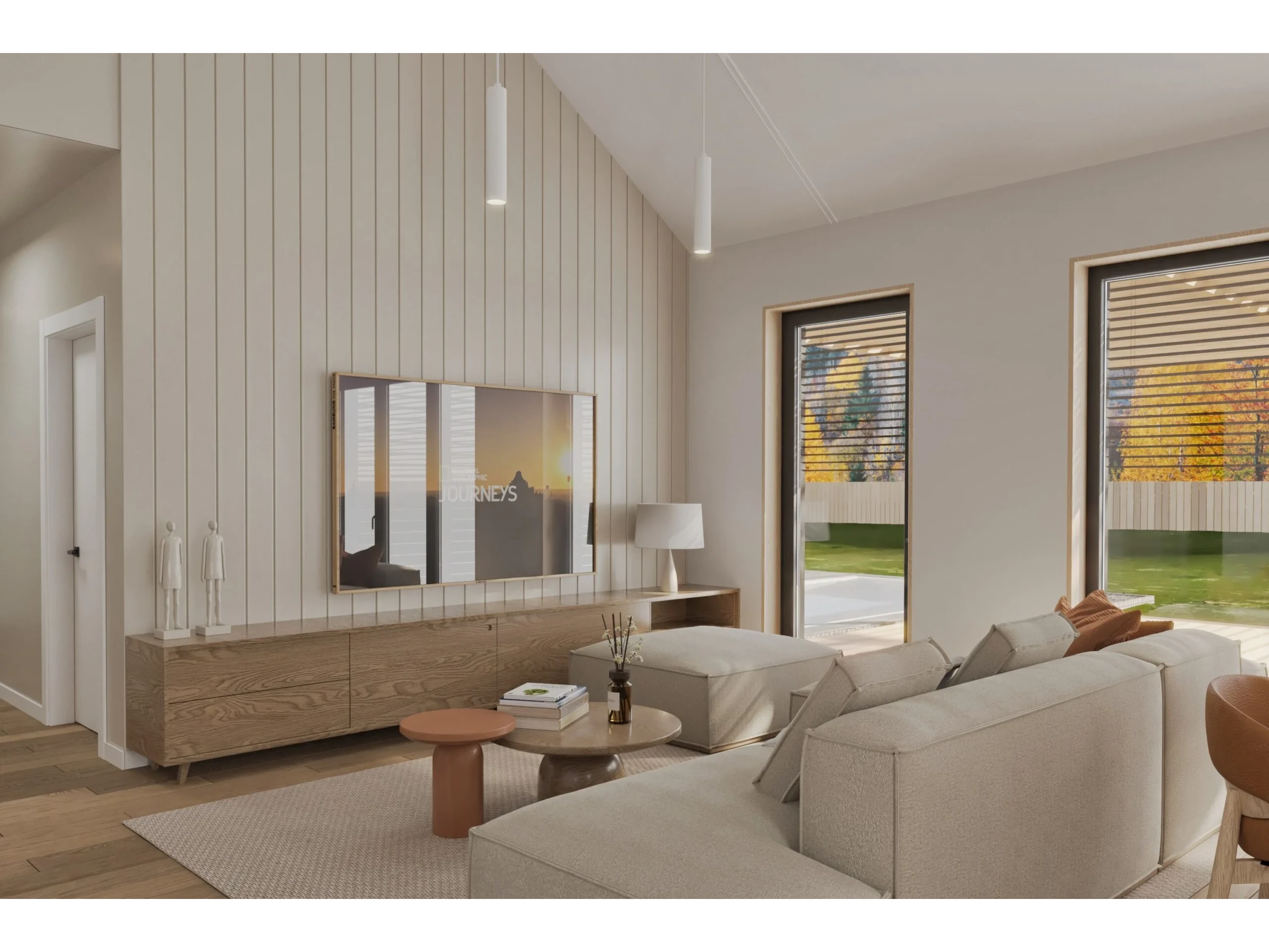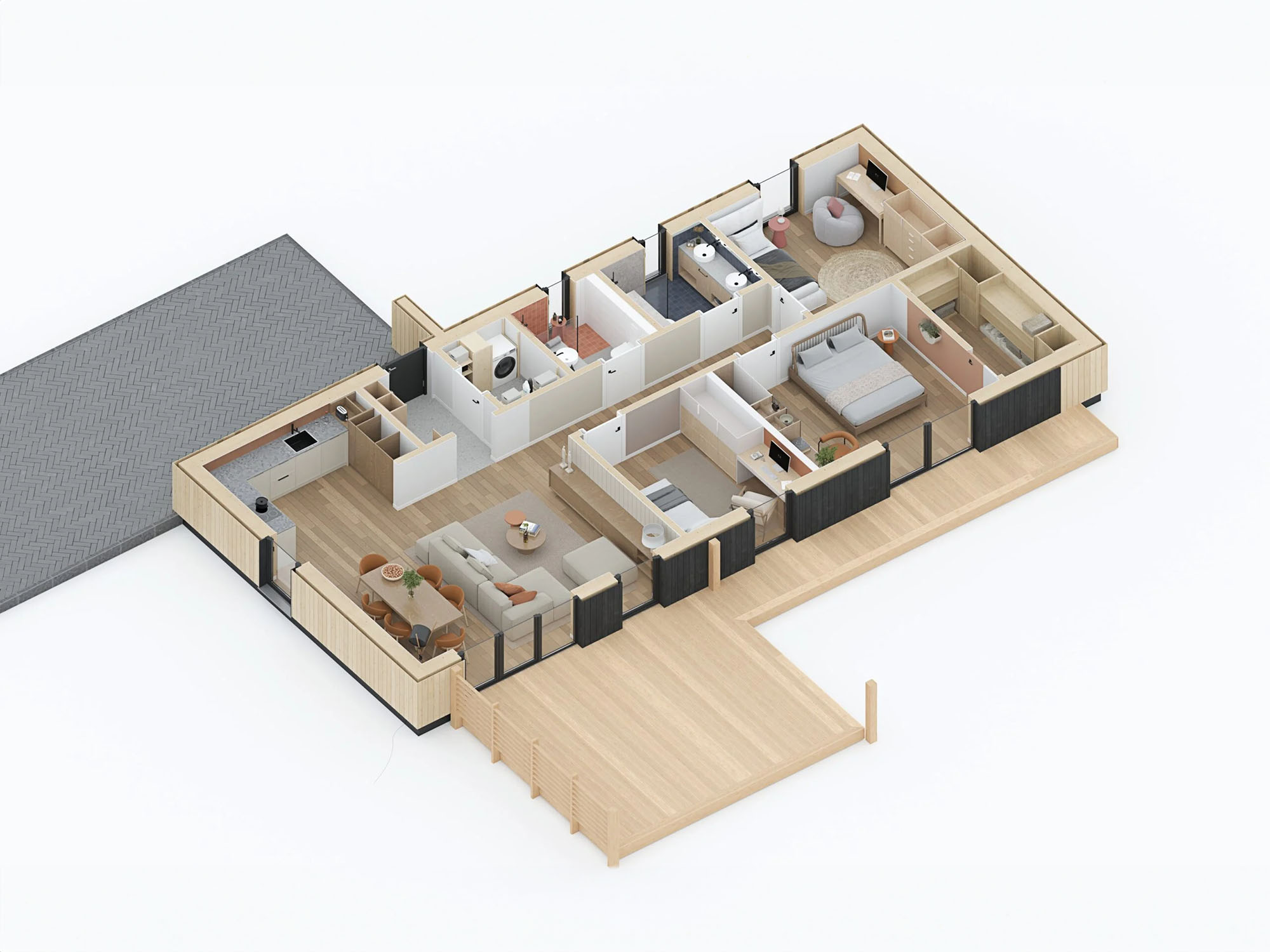 Grand House 103 to parterowy dom z tarasem w stylu nowoczesnej stodoły zaprojektowany z myślą o 4-osobowej rodzinie. W skład pomieszczeń wchodzi duży salon z aneksem kuchennym o powierzchni 37 m², 3 ustawne pokoje, 2 przestronne łazienki, pomieszczenie gospodarcze oraz wiatrołap.