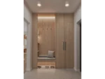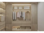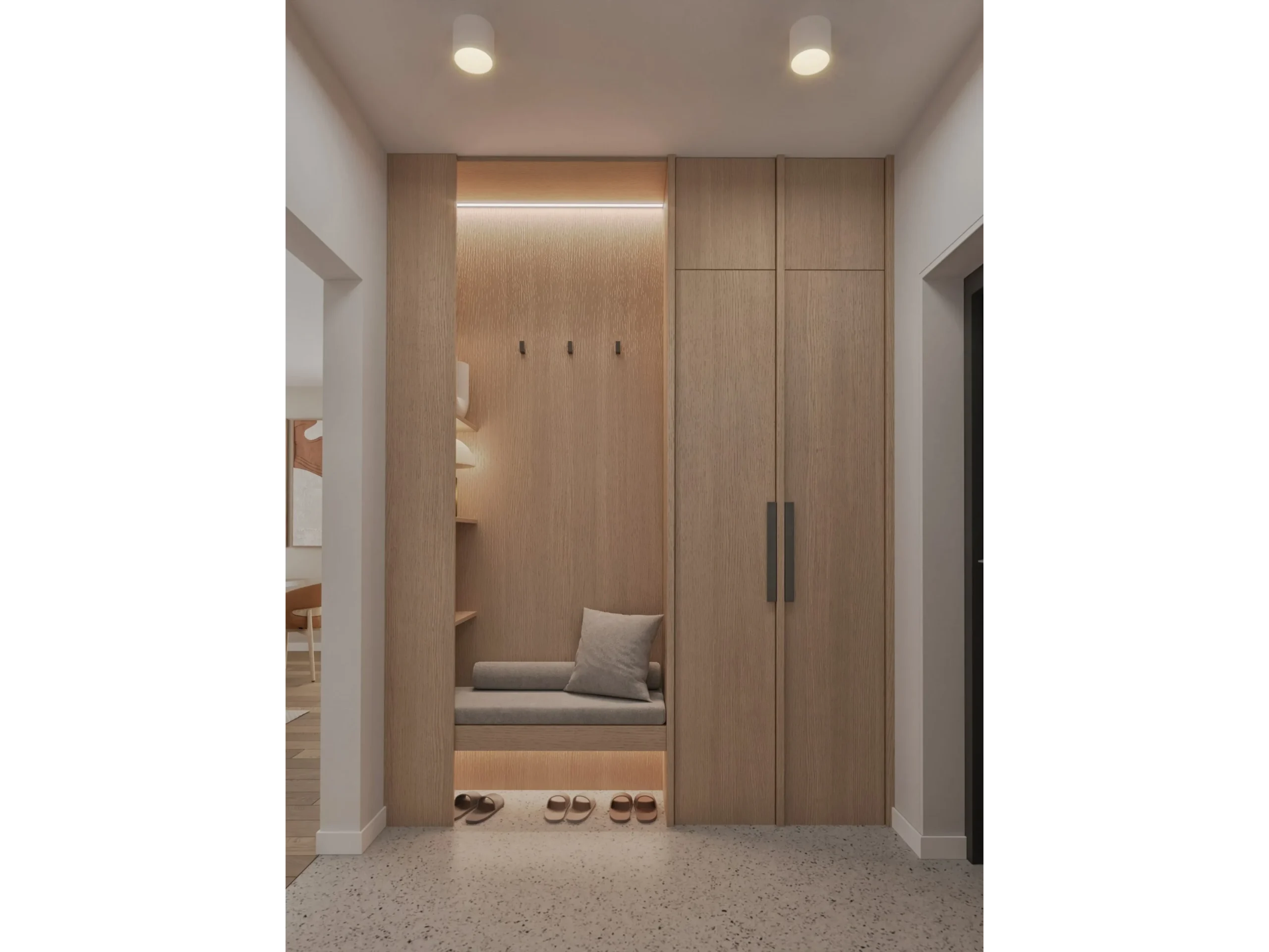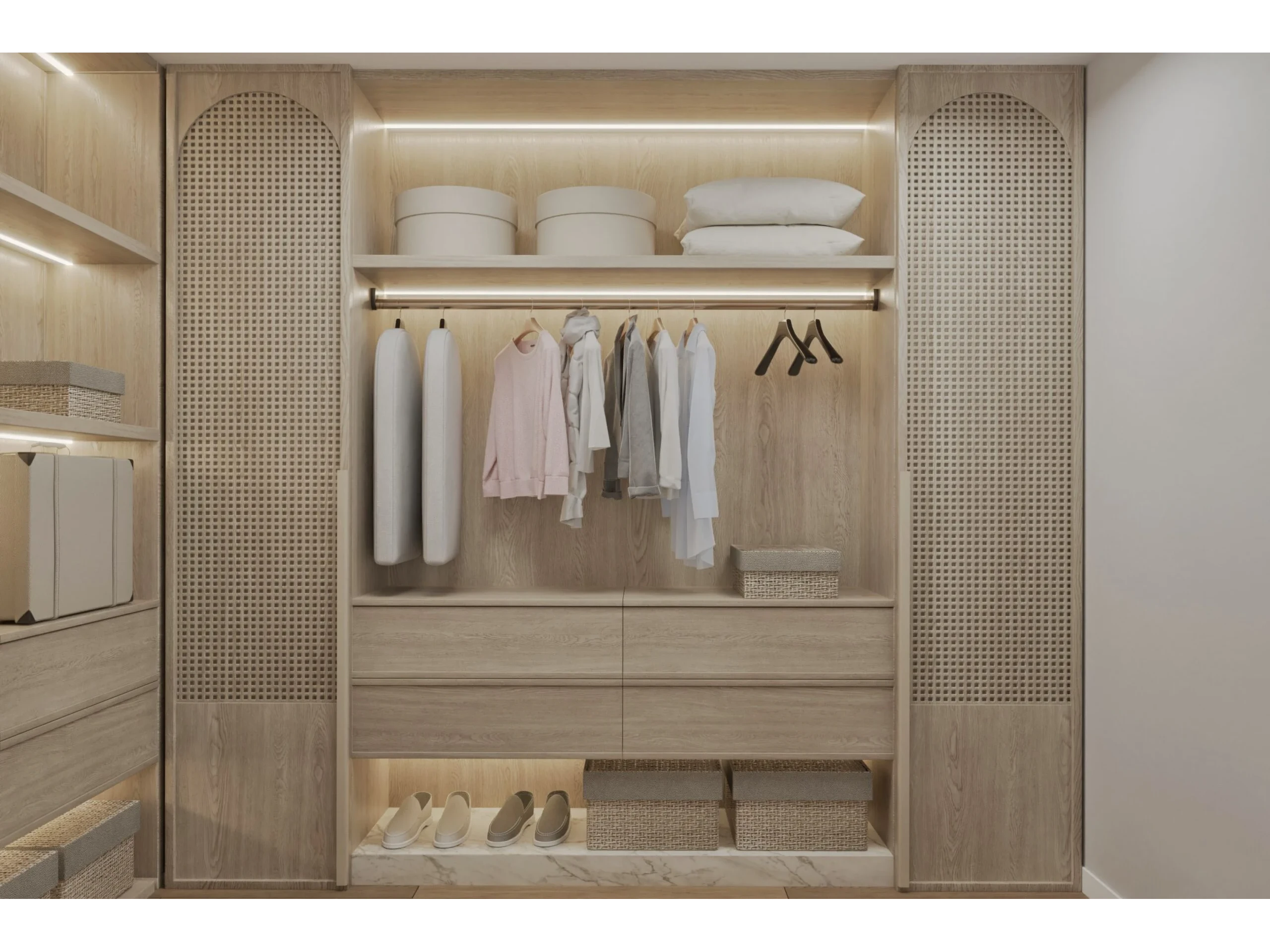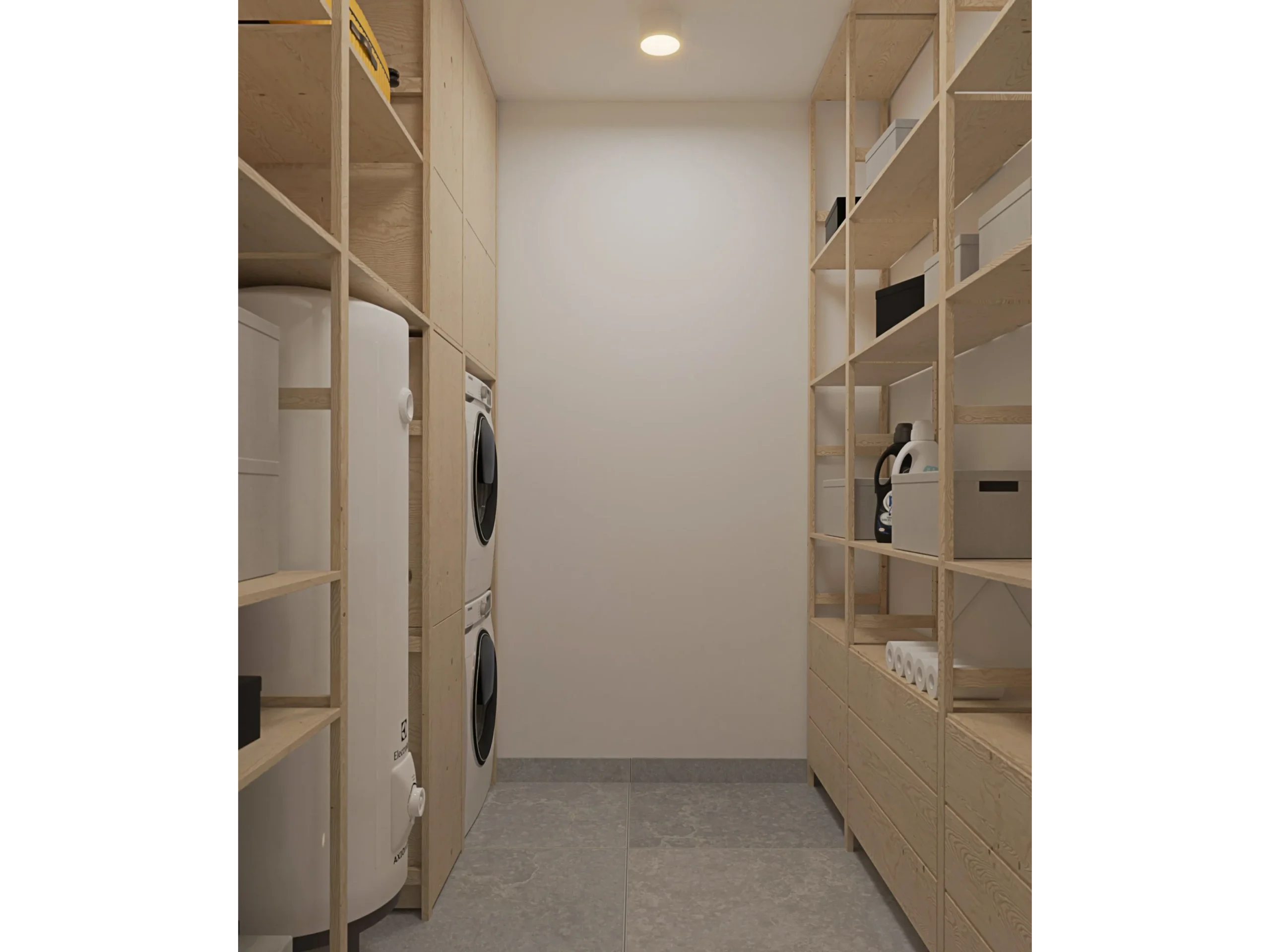 Często pomijane w projektach pomieszczenia do przechowywania rzeczy zostały przez nas potraktowane priorytetowo. Dom posiada przestronny wiatrołap z zaprojektowaną wnęką na szafę, pomieszczenie gospodarcze do przechowywania rzeczy oraz urządzeń technicznych, garderobę w głównej sypialni oraz liczne wnęki i zakamarki przewidziane na dodatkowe szafy.