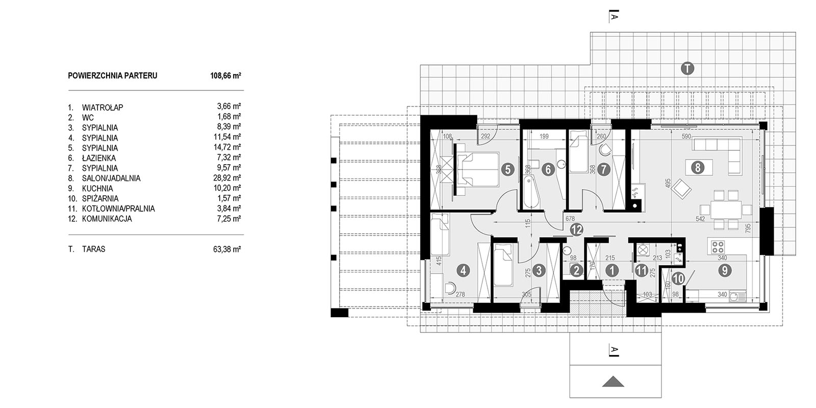 | Garderoba, Kominek, Pralnia, Spiżarnia, Zadaszony taras |