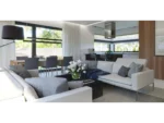 Prefabrykowany dom całoroczny realizowany jest z najlepszych, dostępnych na rynku materiałów najlepszych europejskich i światowych marek. Ściany są ciepłe oraz otwarte dyfuzyjnie, w dużej mierze zapewniają to materiały izolacyjne Steico, Należą do nich Steico Protect na ścianach oraz Steico Zell w przegrodzie konstrukcyjnej ścian i dachu. Okna to m.in. sześciokomorowe profile o głębokości zabudowy 80 mm oraz pakiety trzyszybowe 48 mm z ciepłą ramką zapewniają doskonałą izolacyjność termiczną, okna o współczynniku przenikania ciepła U = 0,78 W/m²K. Drzwi stalowe PCV firmy KMT.
