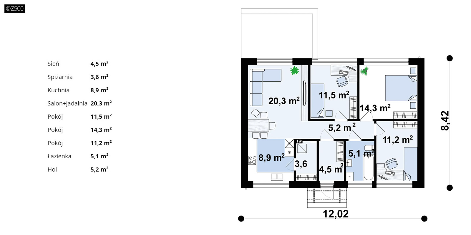 Dom prefabrykowany parterowy Z500 model Z514 D