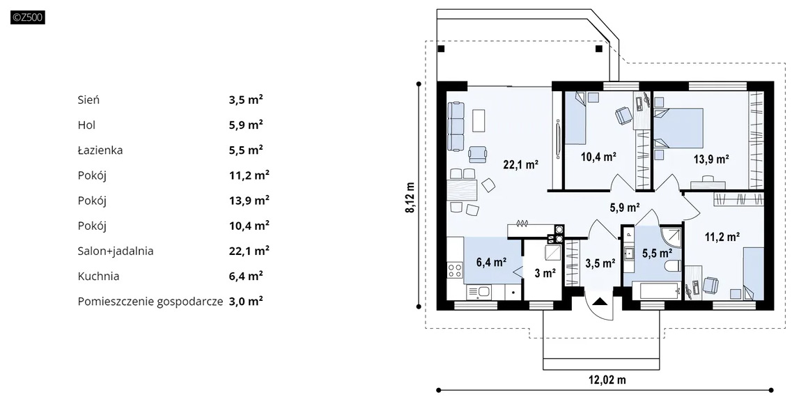 Dom prefabrykowany parterowy Z500 model Z7 D