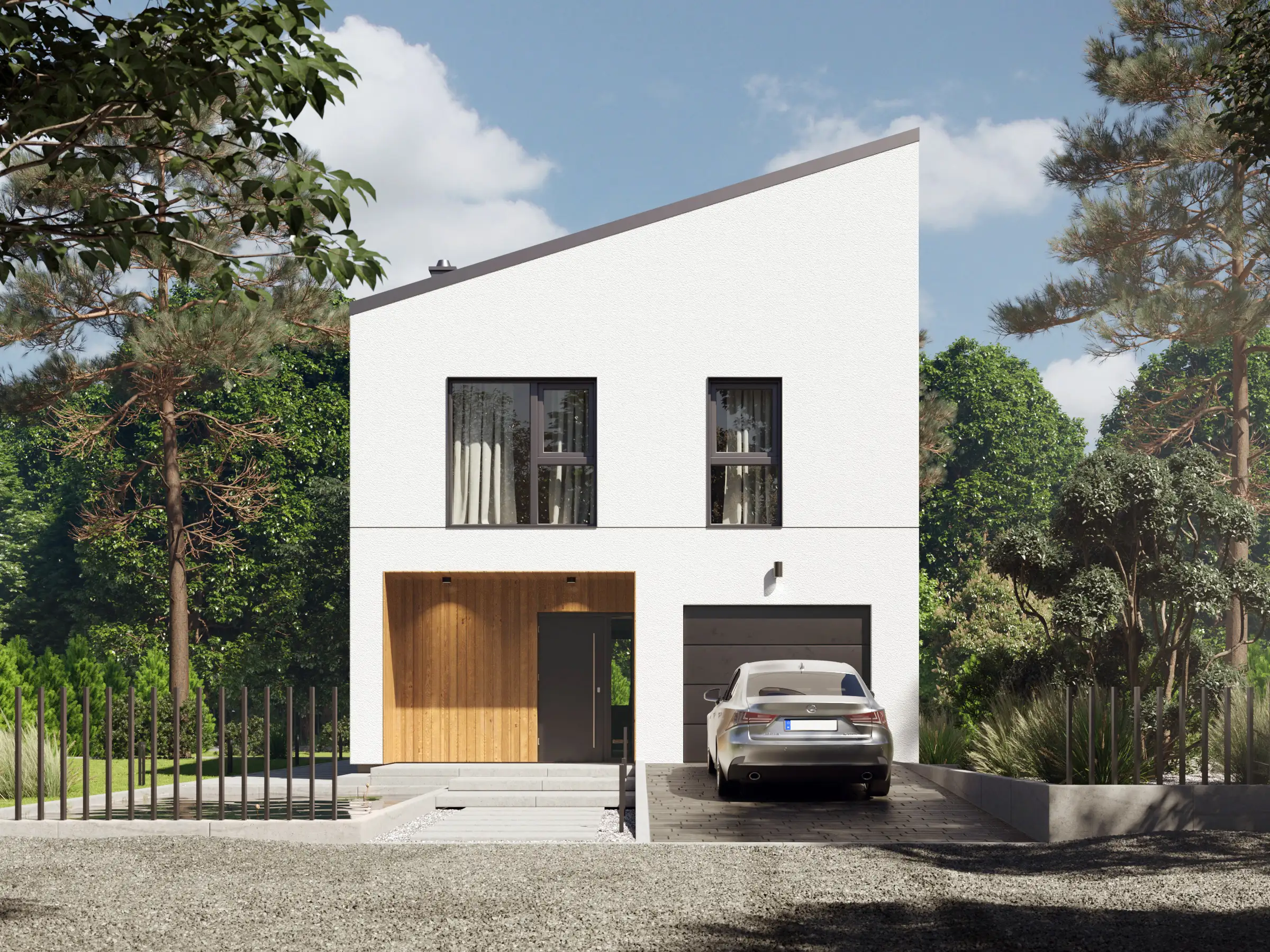 Projektując model P.11 chcieliśmy uzyskać optymalny w swojej prostocie dom, który swoją formą nawiąże do numeru projektu oraz sprawdzi się idealnie w roli bliźniaka lub zabudowy szeregowej. Jeden projekt wiele możliwości.