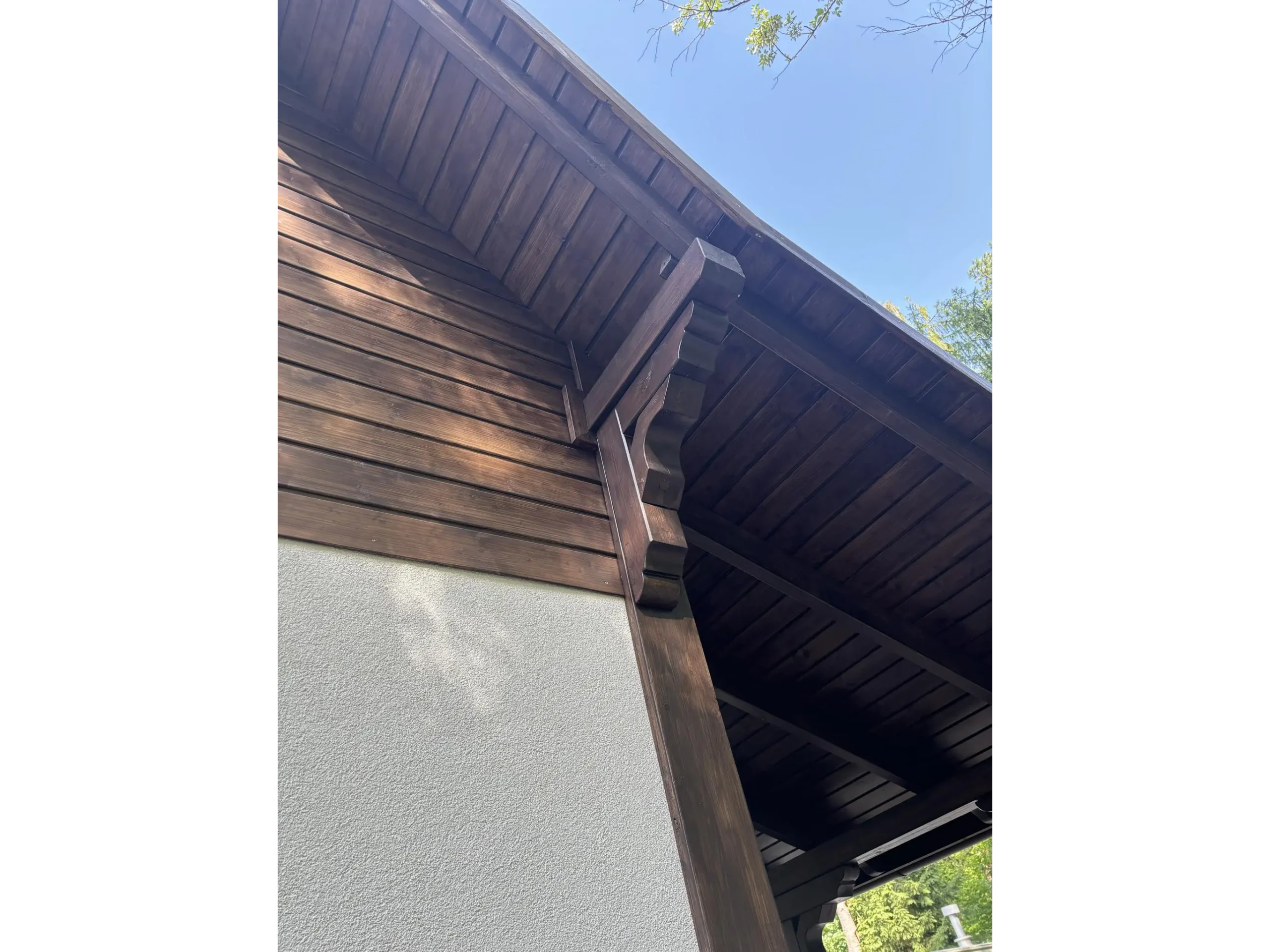 - Konstrukcja drewniana 195 x 45 mm (certyfikat C24) zależne od wielkości budynku, strugana czterostronnie - fazowana, suszona do max 16-18% wilgotności