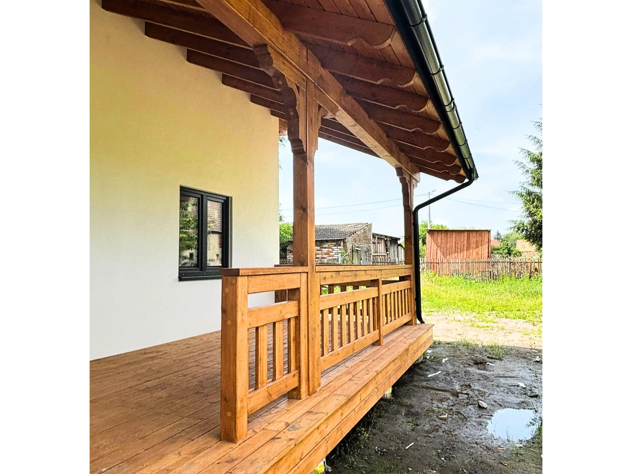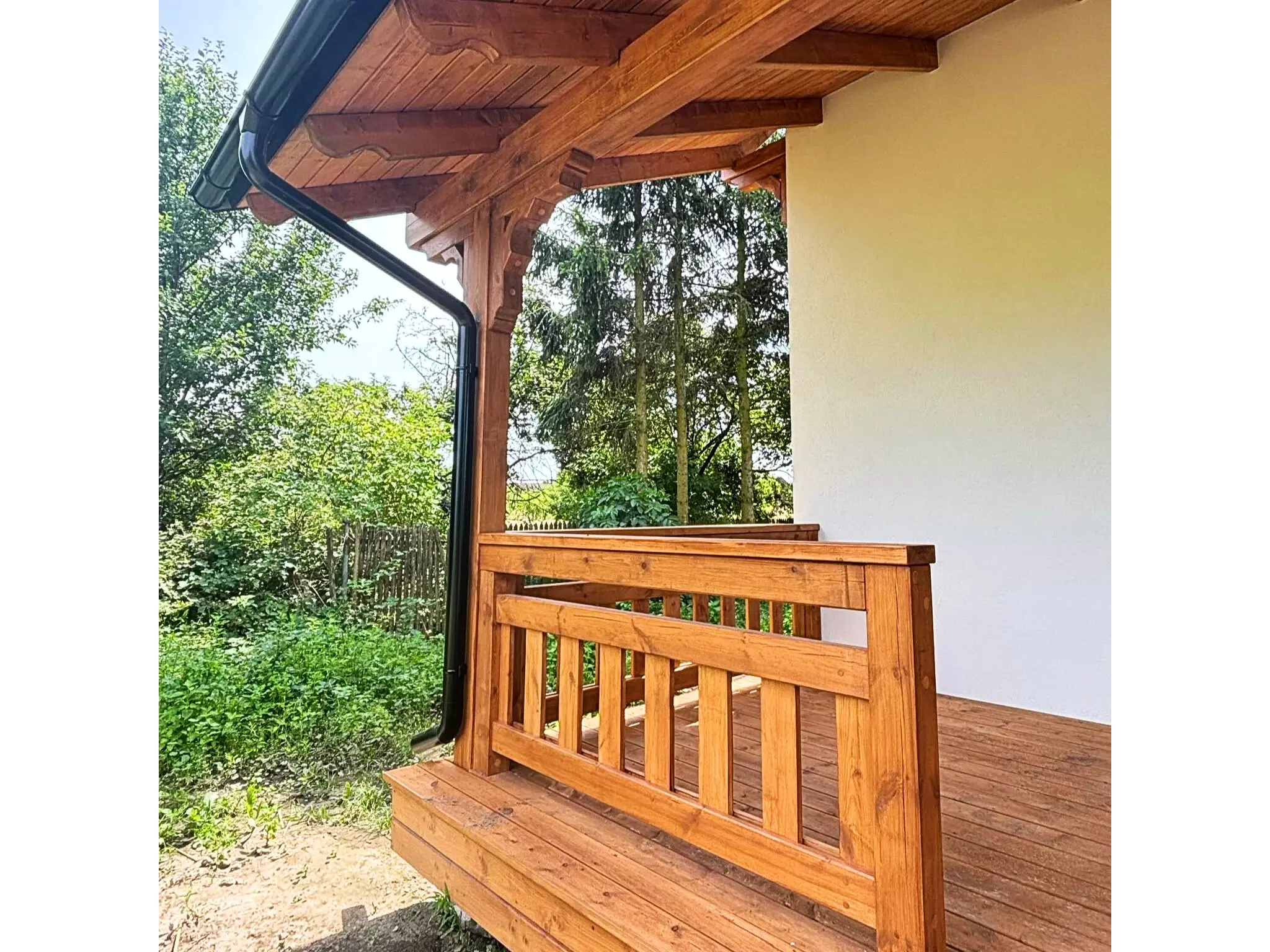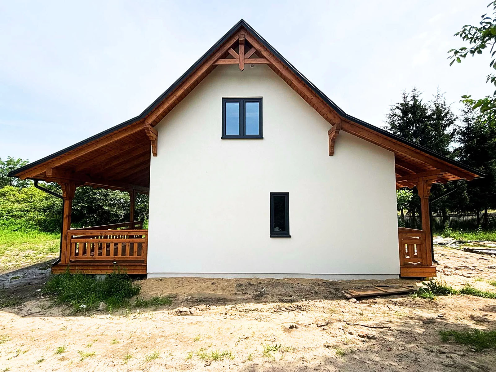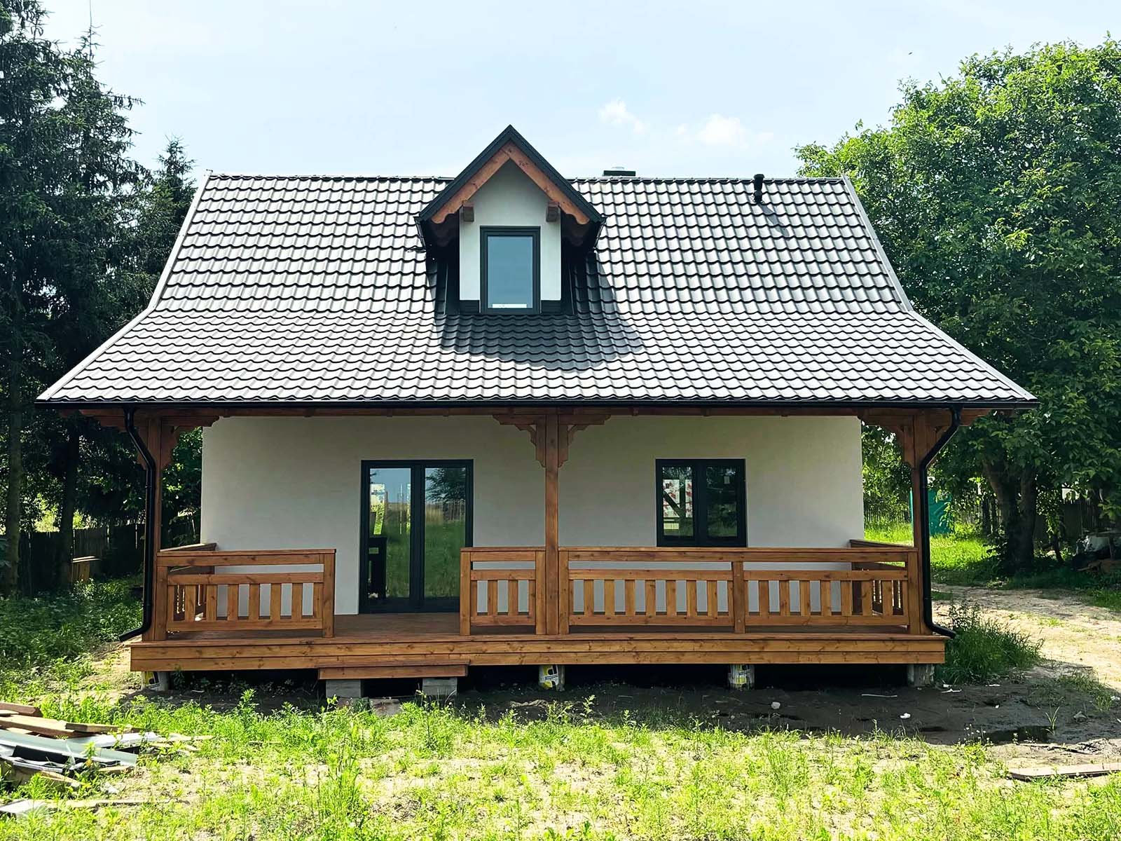 - Konstrukcja drewniana 195 x 45 mm (certyfikat C24) zależne od wielkości budynku, strugana czterostronnie - fazowana, suszona do max 16-18% wilgotności