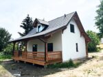 - Dach - krokwie lite KVH 180 x 60 mm, strugane czterostronnie - fazowane, suszone do max 16-18% wilgotności, podbitka malowana na wybrany kolor farbami Teknos, blachodachówka Bratex, orynnowanie metalowe, ława i stopnie kominiarskie (gwarancja 45 lat)