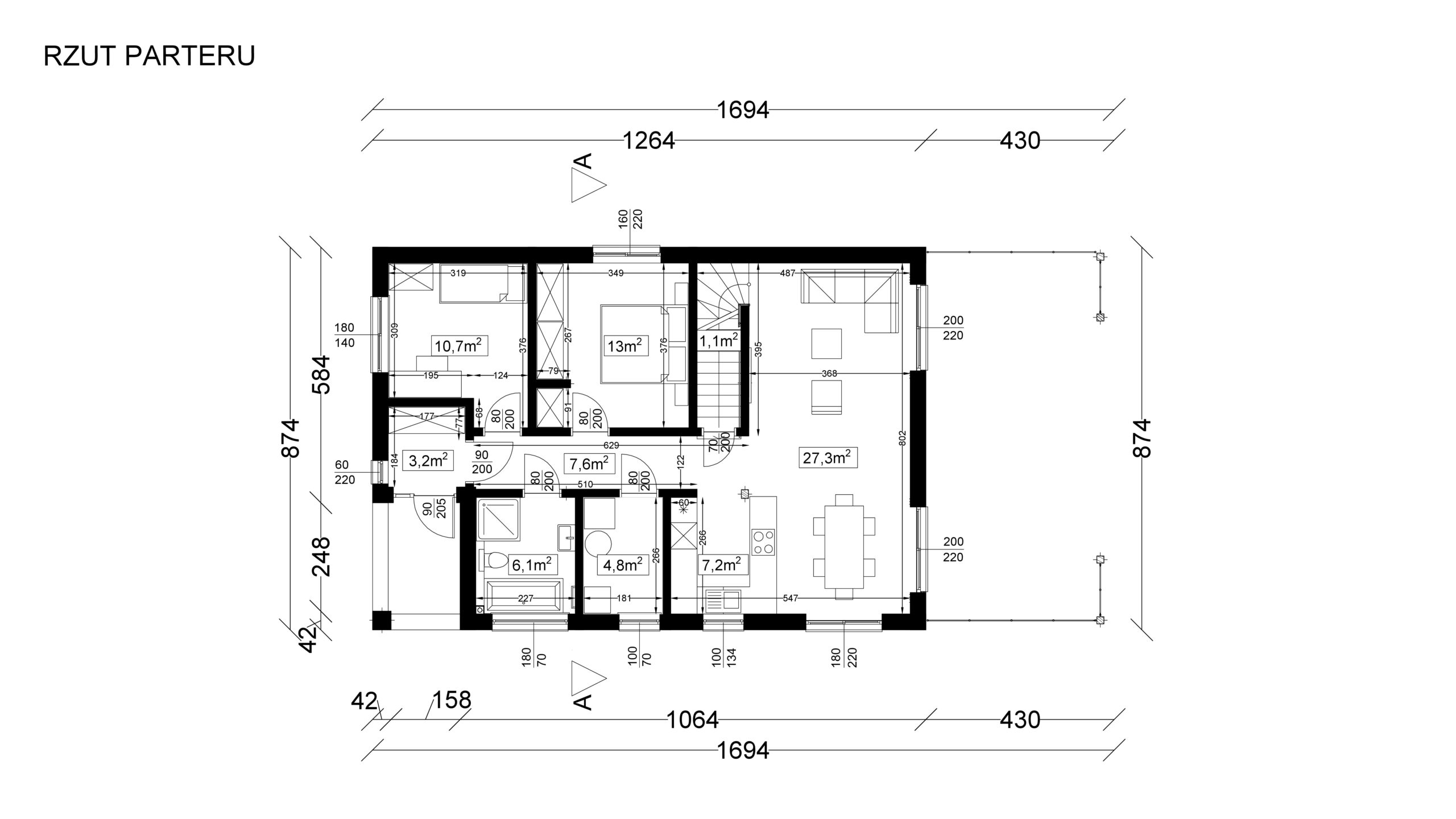 - Stolarka okienna (okna PVC, 3–szybowe z 7–komorowym profilem ramy, o niskim współczynniku przenikania ciepła)