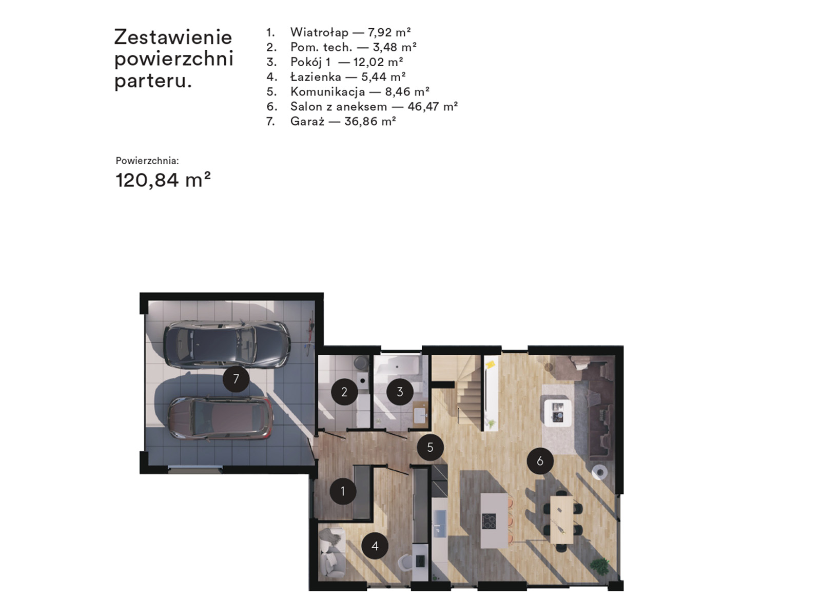 | Garderoba, Kominek, Pomieszczenie gospodarcze, Pralnia, Spiżarnia, Zadaszony taras |