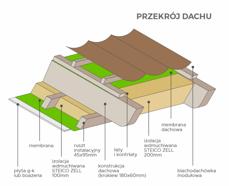 Podstawowym aspektem taniego oraz zdrowego użytkowania wybudowanych przez nas domów jest izolacja. Materiały izolacyjne, które stosujemy takie jak izolacja wdmuchiwana Steico Zell w ścianach i dachu, płyta izolacyjna Steico Protect minimum 6 lub 8 cm, okna 3-szybowe, ciepły montaż okien, drzwi pasywne oraz ciepły próg etc. stanowią o wygodzie i ekonomii użytkowania naszych domów. Polecamy również stosowanie urządzeń takich jak pompy ciepła, rekuperacja oraz fotowoltaika, zapewniających wygodę w ich użytkowaniu.